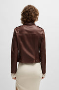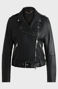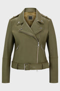 Women's Regular Fit Buckled Belt Nappa Leather Biker Jacket