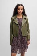 A biker-style jacket cut to a regular fit in nappa leather with a zipped front and buckled belt. We continuously look for more responsible ways to produce and finish our products. A minimum of 60% of the leather used to make this product has been sourced from certified tanneries.