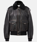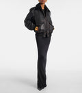 Women's Trimmed Black Aviator Bomber Leather Jacket