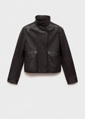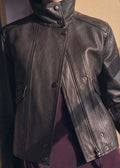 Women's Turtleneck Black Leather Jacket