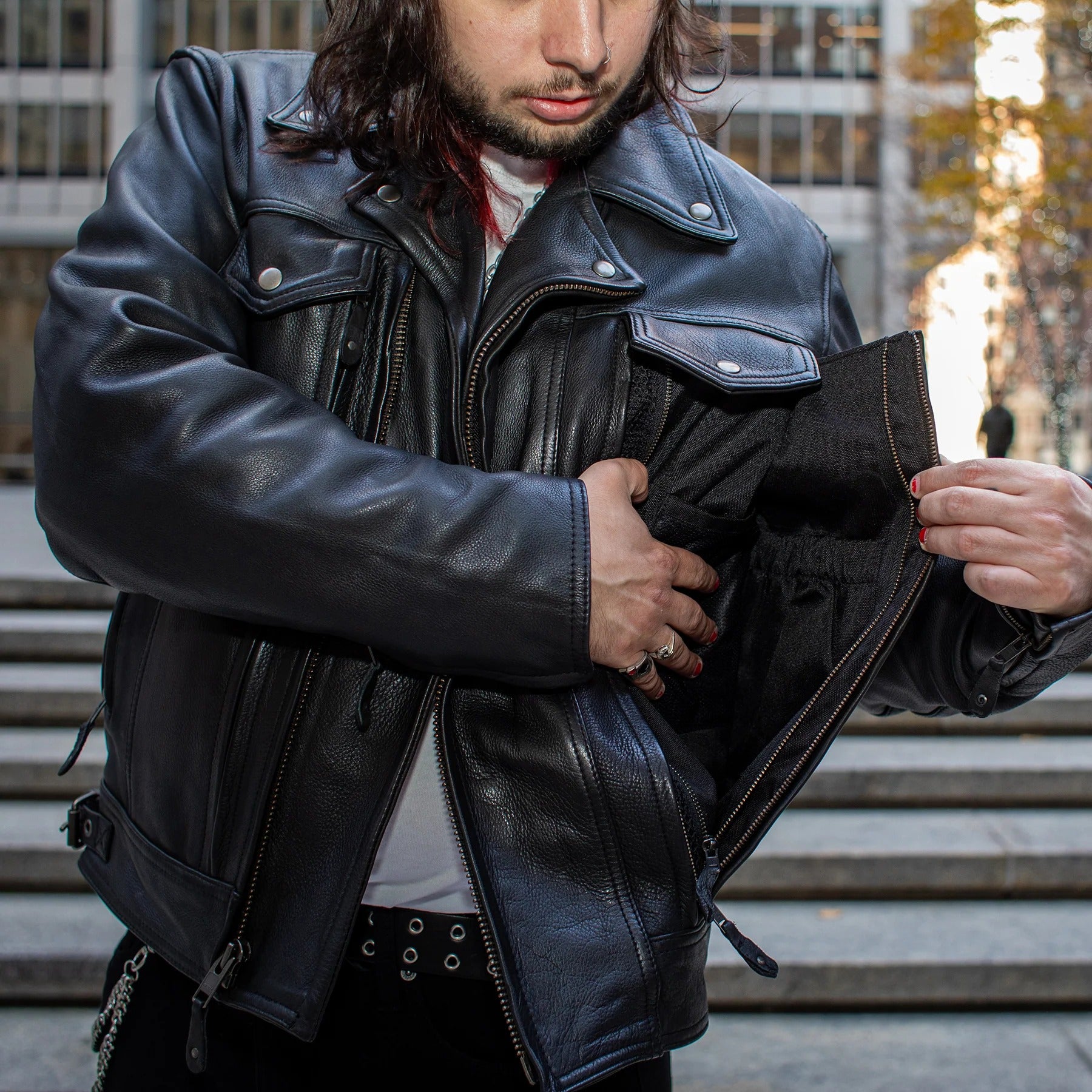 The Mastermind combines the look of a more classic motorcycle style jacket with the pockets and features of one of our best sellers, the Raider jacket. With 8 hidden utility pockets, two conceal carry pockets, and armor pockets, you've got more pockets than you'll know what to do with. It also features an action back, underarm gussets and a zip out thermal liner. This jacket runs a little large, so be sure to check the size chart.