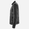 Introducing the RICKY Men's Leather Jacket, a timeless classic in black. Crafted with meticulous attention to detail, this casual blouson-style jacket is made from luxuriously soft lambskin napa leather, ensuring a comfortable and stylish fit. The sleek band collar adds a touch of sophistication, while the front zip closure allows for easy and convenient wear. Embrace the epitome of rugged elegance with this versatile black leather jacket, perfect for any occasion. Whether you're heading out for a night on the town or simply running errands, this men leather blouse is designed to effortlessly elevate your style. Don't miss out on this must-have wardrobe staple that combines durability, comfort, and undeniable fashion appeal.