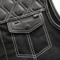Club style vest with one inch collar, covered snaps and hidden cropped zipper