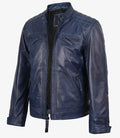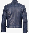 Be different with the Diamond Classic Blue Cafe Racer Jacket. This premium leather jacket breaks the mold with its bold blue hue and eye-catching diamond-shaped shoulder design, all wrapped in a timeless cafe racer silhouette. Combining undeniable style with long-lasting durability, it's the perfect piece for the modern rider or adventurer seeking a touch of edgy sophistication.