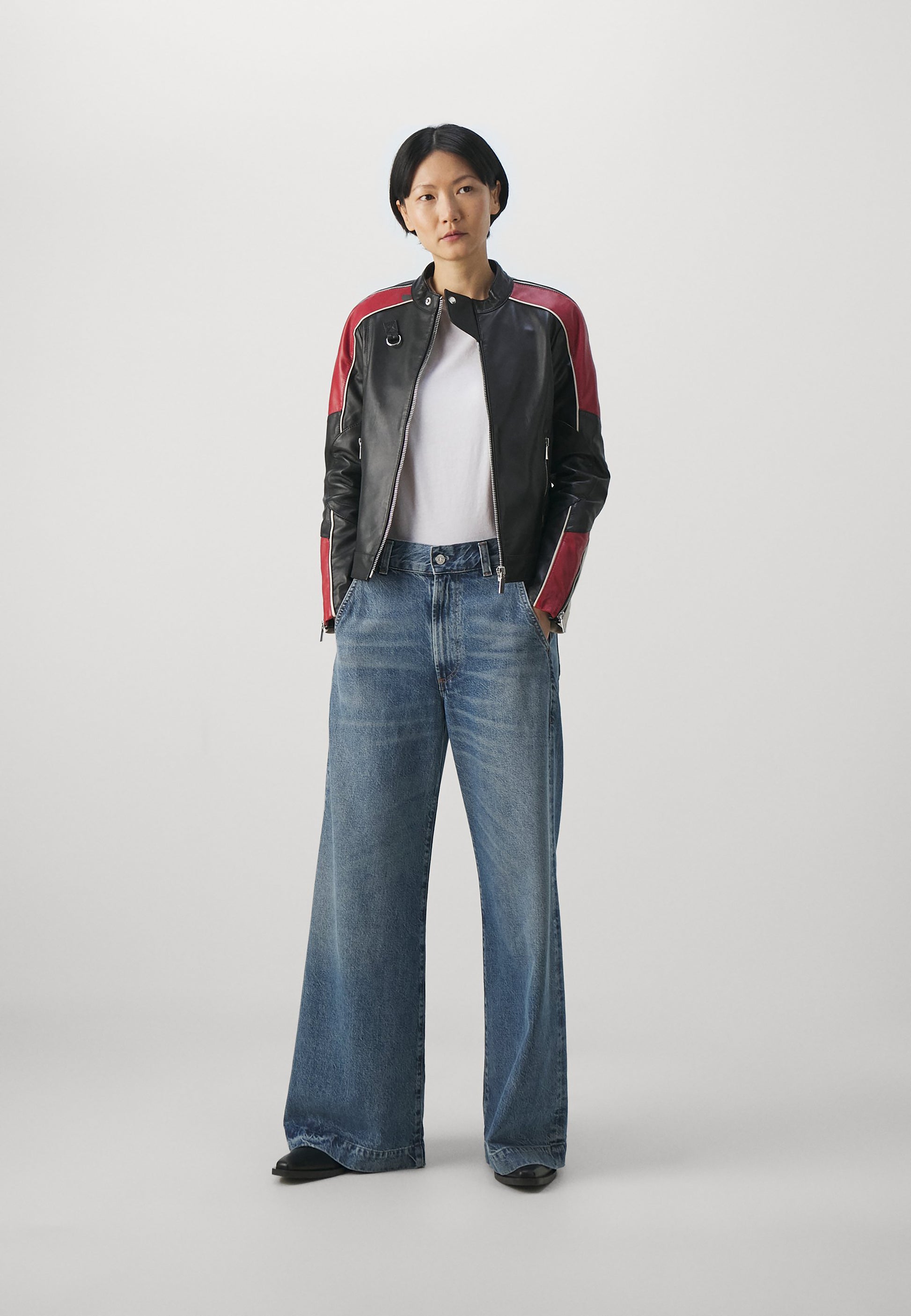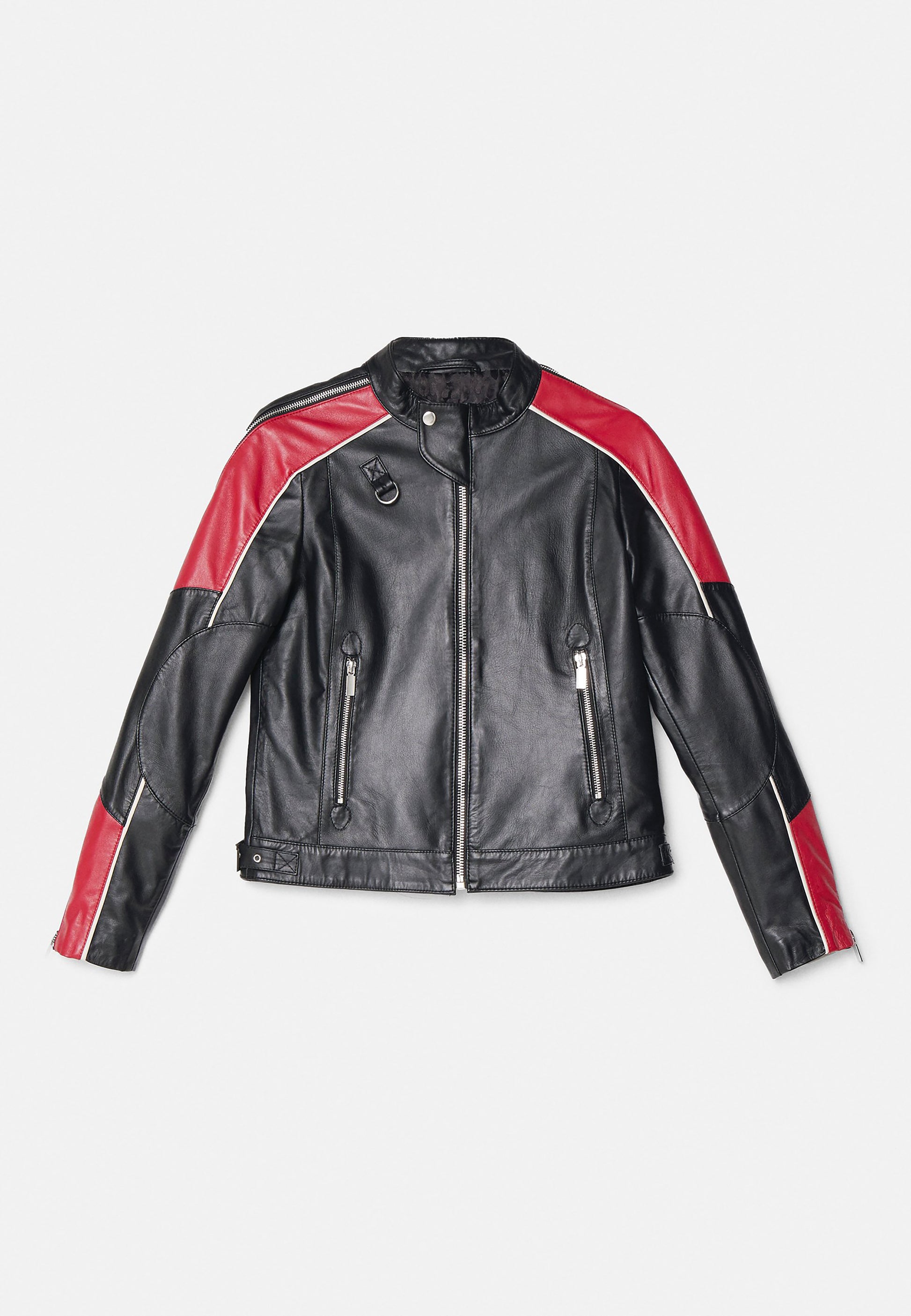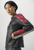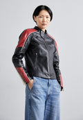 Women Moto Leather Biker Jacket Multicolor Shoulder Stripes